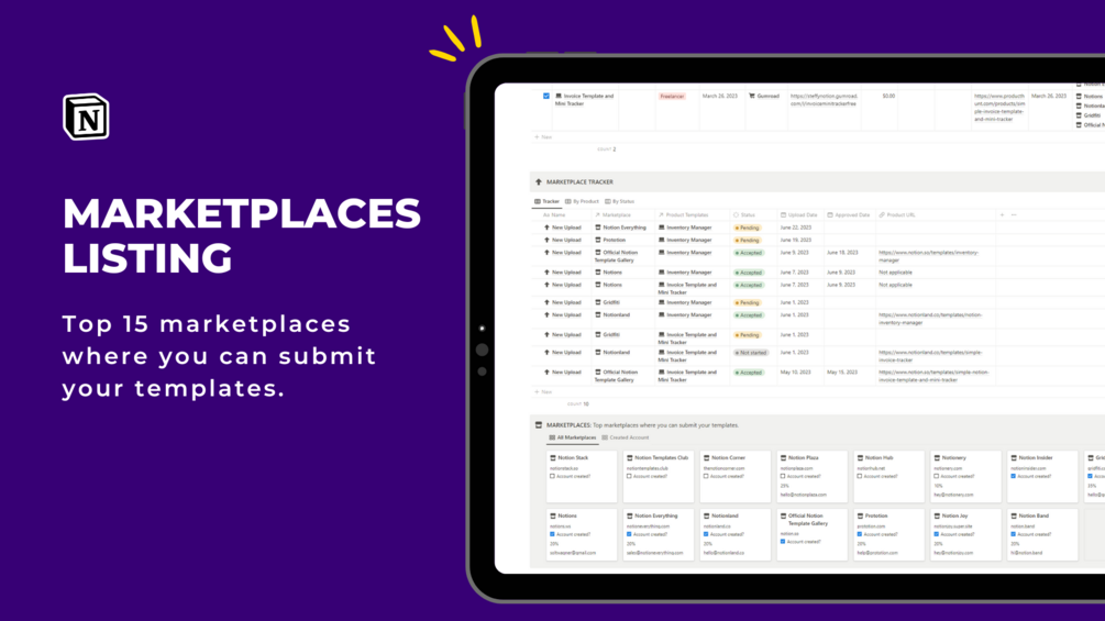 The Marketplace Tracker tackles the pain of managing and tracking template submissions across multiple marketplaces, providing creators with a simple and streamlined solution.